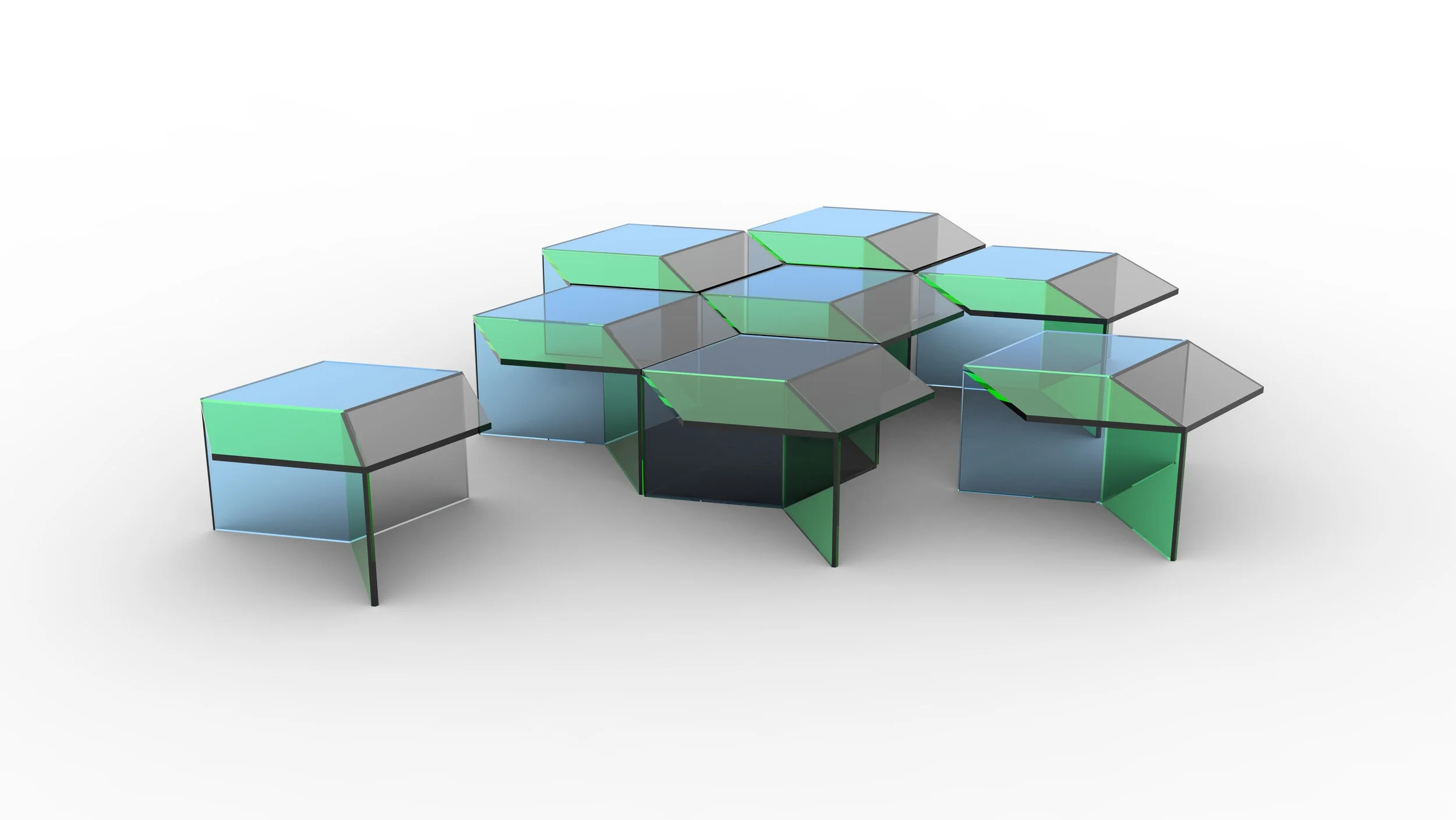 A coffee table made from a single piece, which repeated three times becomes a unit and many of them combined can create a wider surface with various pattern combinations.